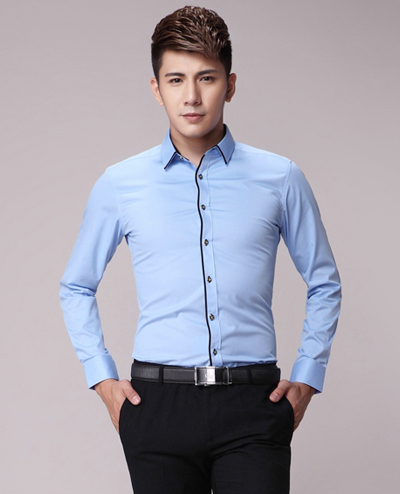 淺藍色 我們之所以把工作服這種顏色擺在第一位,是因為淺藍色在襯衫上得到了最廣泛的應用.這種顏色的襯衫不僅能夠和公務裝相搭配,而且也能和牛仔褲,絲光卡其布褲子或者燈心絨褲子以及幾乎各種各樣的領(lǐng)帶相搭配.這種顏色還能使各種膚色看起來更好看。